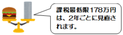 給与所得控除は、最低保障額を74万円、基礎控除とあわせた課税最低限を178万円に引き上げます。
